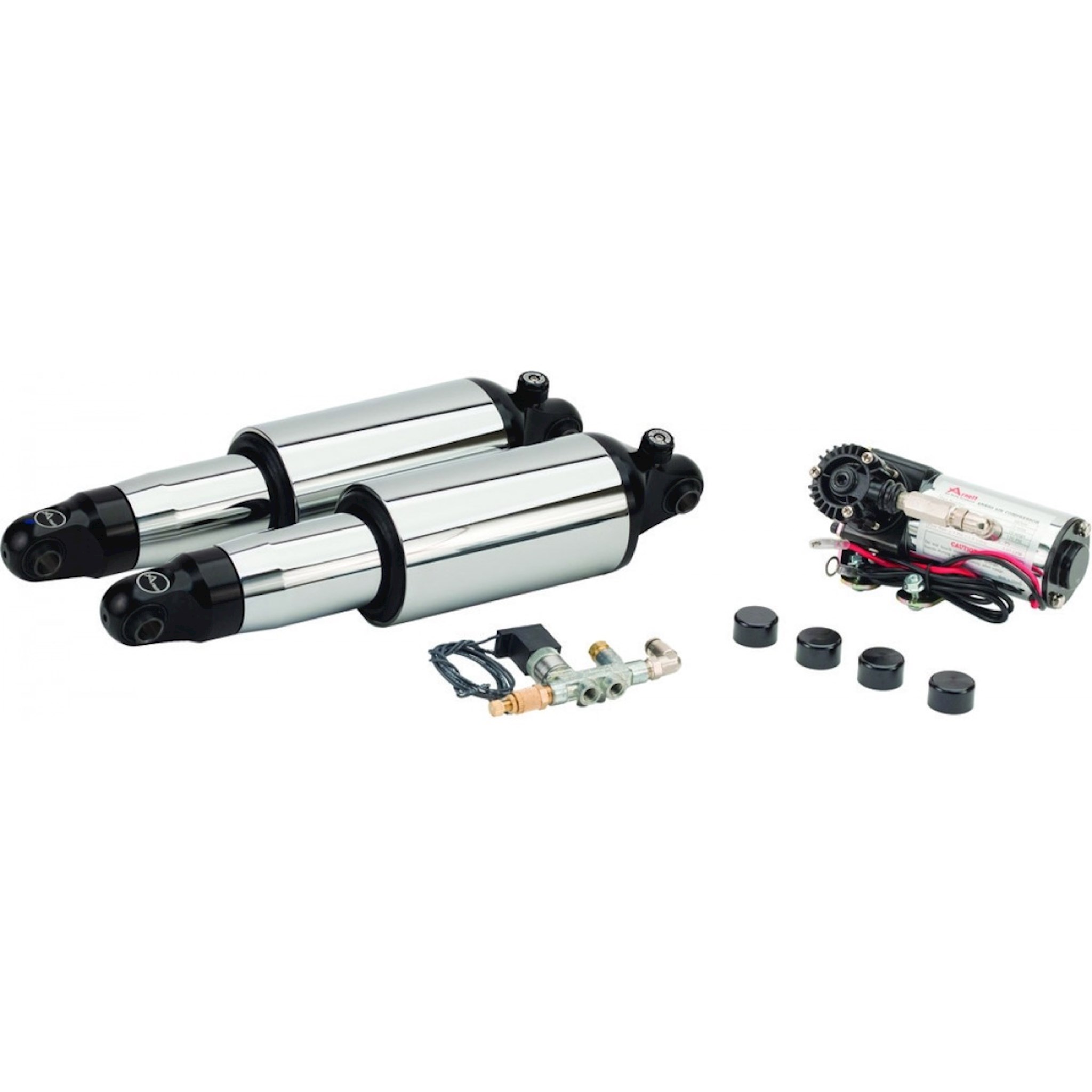 Arnott’s new rebound adjustable Ultimate Ride Air Suspension Kit for Harley-Davidson® V-Rod® models has been custom designed to provide the rider with superior control, ride comfort and height adjustability. The kit, featuring Arnott’s TruAIR® Technology, includes a rugged air spring sleeve. At the core of this system are two custom nitrogen-charged FOX® shock absorbers with rebound control knobs. Then, using a patent-pending design, Arnott adds a rugged Goodyear® air spring, ensuring superior comfort, ride quality, and durability. Arnott pairs your shocks with a small but powerful compressor, application-specific mounting bracket, and air distribution valve block which includes a muffler to control how fast air is released. Each kit includes everything you need for a fast and flawless installation including a detailed installation manual, fused wiring harness and relay assembly, handlebar-mounted inflation switch, all necessary tubing, cable ties, fittings, bolt covers, and mounting accessories. Each shock is custom-crafted and rigorously tested in Arnott’s Florida manufacturing facility and is backed by Arnott’s Limited Lifetime Warranty. ELEVATE YOUR RIDE.®