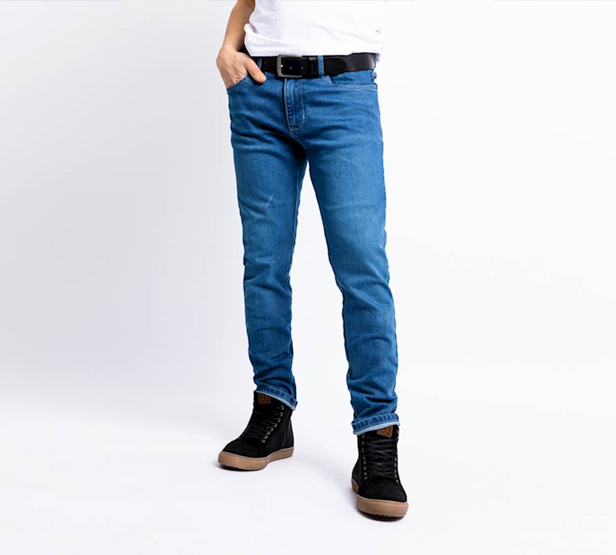 CE certification: AAA (EN17092-2:2020). Monolayer design XTM-Fiber® and stretch denim twill blend XTM protector-ready Integrated height-adjustable knee protector pockets. Integrated hip protector pockets Level 1 knee and hip protectors included. Water-repellent and breathable. Multistretch comfort. Five-pocket denim style. Strap for gloves and keys. YKK zipper. Slim-Fit/close-fitting leg.