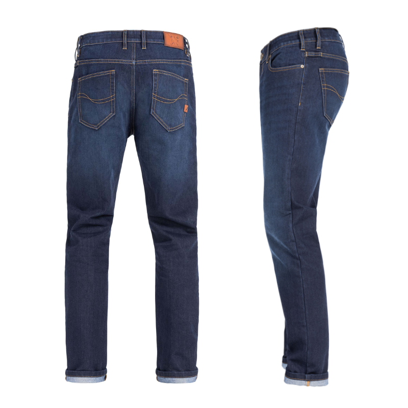 CE certification: AAA (EN17092-2:2020). Monolayer design XTM-Fiber® and stretch denim twill blend XTM protector-ready Integrated height-adjustable knee protector pockets. Integrated hip protector pockets Level 1 knee and hip protectors included. Water-repellent and breathable. Multistretch comfort. Five-pocket denim style. Strap for gloves and keys. YKK zipper. Slim-Fit/close-fitting leg.