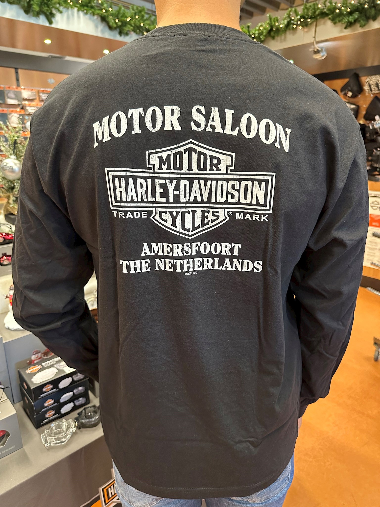 Motor Saloon Harley-Davidson Dealer Shirt. Black Dealer longsleeve with Harley-Davidson lettering with Snowmen. Material: 100% cotton.