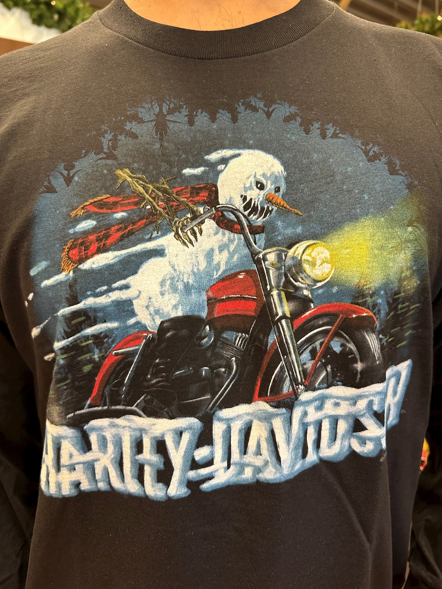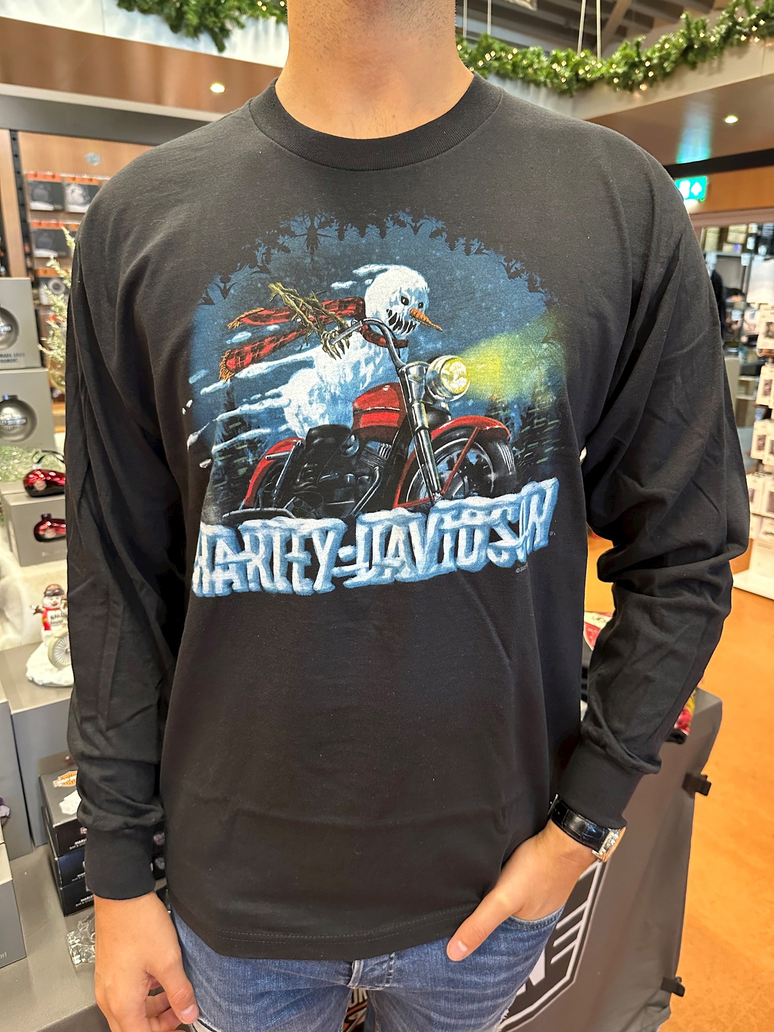 Motor Saloon Harley-Davidson Dealer Shirt. Black Dealer longsleeve with Harley-Davidson lettering with Snowmen. Material: 100% cotton.